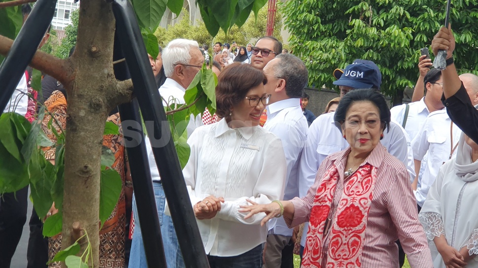 SuaraJogja.id - Ketua Dewan Pengarah Badan Riset dan Inovasi Nasional (BRIN), Megawati Soekarnoputri melakukan penanaman pohon bodhi di halaman Balairung UGM, Rabu (1/10/2025).
