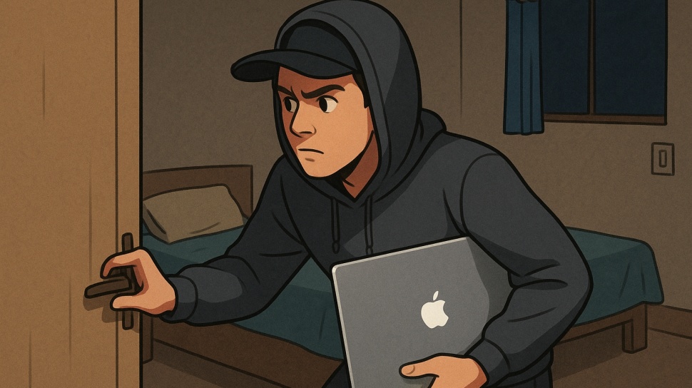 Saat korban kembali ke kontrakan, laptop miliknya sudah tidak berada di atas meja belajar. Ia kemudian menghubungi temannya yang tinggal di kamar lain.
